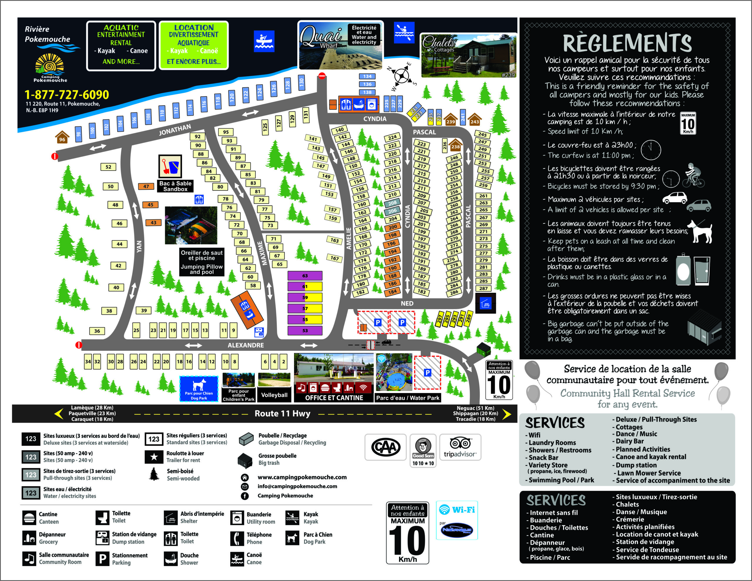 Explorez les éléments suivants pour découvrir l’éventail complet des services offerts par le Camping Pokemouche. De l’hébergement en plein air aux activités familiales, plongez dans une palette d’offres conçues pour enrichir votre séjour. Que vous optiez pour le camping traditionnel, les chalets confortables, ou les expériences uniques à proximité de la rivière Pokemouche, notre site web vous guide à travers une aventure exceptionnelle où le confort et la nature se rencontrent harmonieusement.
